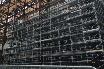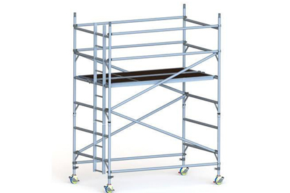 Mobile tower scaffold, this type of scaffold is assembled from pre-formed framing components and fitted with wheels which allow it to be rolled from one place to another. It is typically used on sites where multiple areas require access for light maintenance work, or where a traditional scaffold would have to cover too great a distance to be practical.